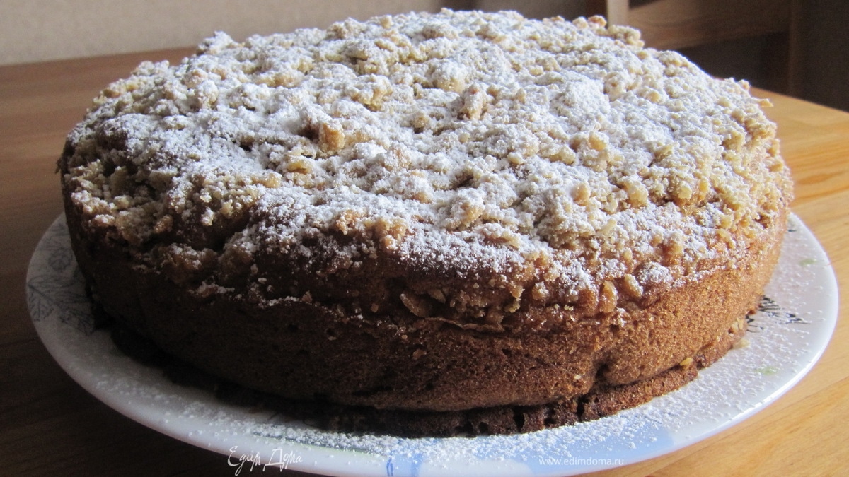 Сверху посыпать посыпкой из холодильника и отправить в предварительно разогретую до 180°C духовку приблизительно на 1 час. Время выпечки зависит от вашей духовки. Пирог должен зарумяниться, а лучинка должна выходить из центра пирога сухой. - Шаг 8