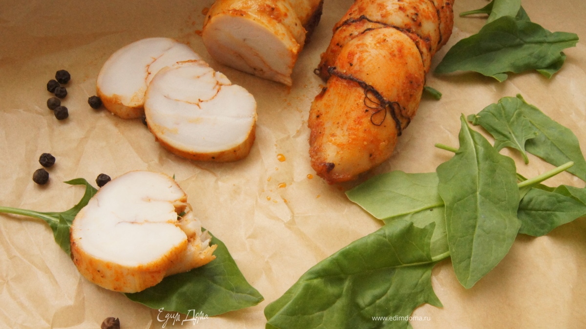 В миске смешать паприку, перец, мед и масло. Натереть куриное филе получившейся смесью. Плотно обвязать филешки толстой ниткой или шпагатом. - Шаг 2