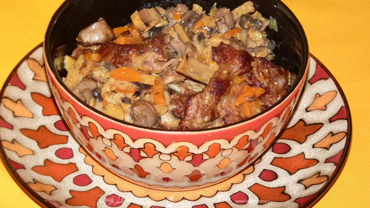Предлагаю рецепт нежных ребрышек с грибами и овощами