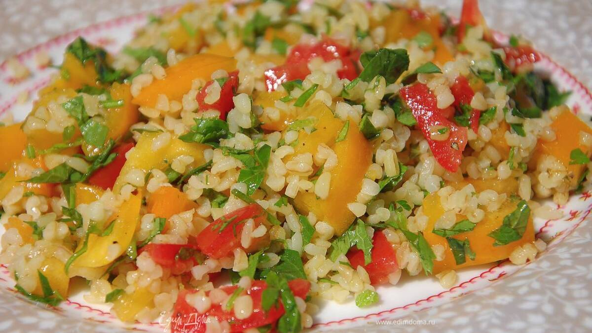 Здорово. Несколько замечаний: 1. бургуль не варят, а заливают горячей водой до набухания 2. добавляют мелко нарезаные огурцы Приятного аппетита