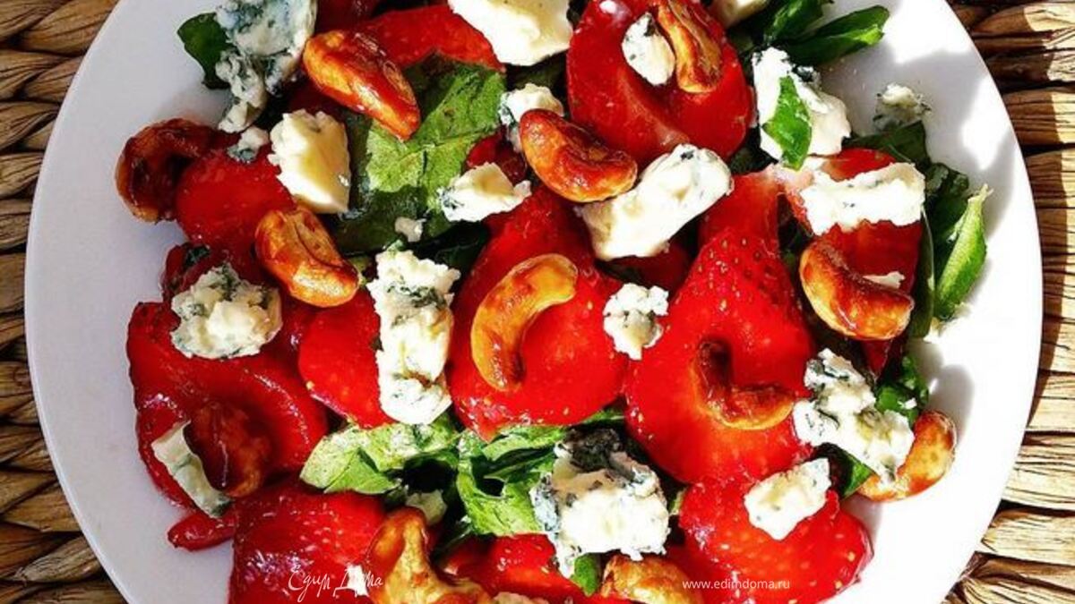 Салат с клубникой, голубым сыром, кешью и шпинатом