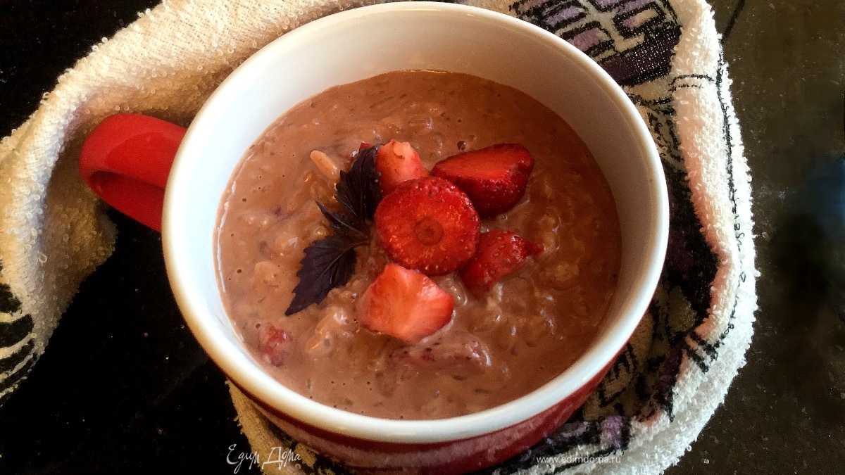 Рисовая каша с клубникой и шоколадом