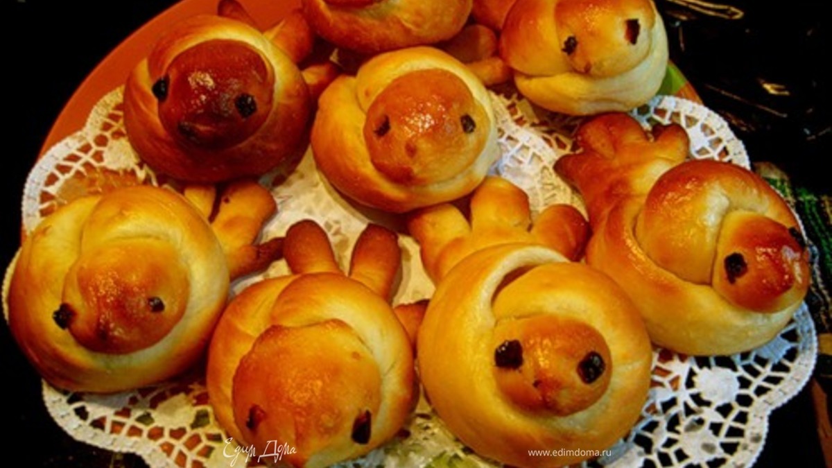 - Шаг 1Надо замесить муку с разведёнными в чуть тёплой воде дрожжами, добавить сахар, растительное масло, ванилин. Можно добавить краситель- морковный или свекольный сок. Дайте тесту подняться, разделите его на полоски. Каждую полоску раскатайте так, чтоб получился валик. Каждый валик завяжите узлом, одному концу придайте форму головки с клювиком, а другой конец разрежьте ножом так, чтоб получился птичий хвостик. Вставьте две изюминки для глаз. Посыпьте "жаворонков" сахаром и испеките в духовке.