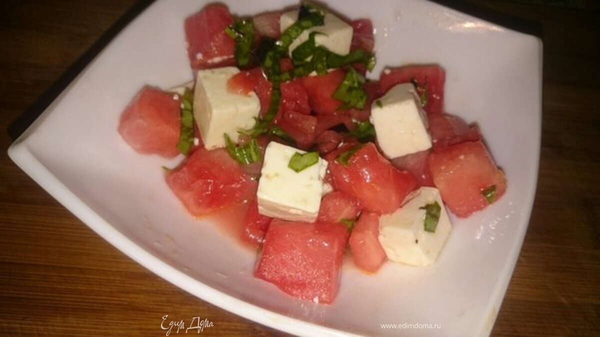 Брынзу порезать кубиками и добавить к арбузу. - Шаг 2