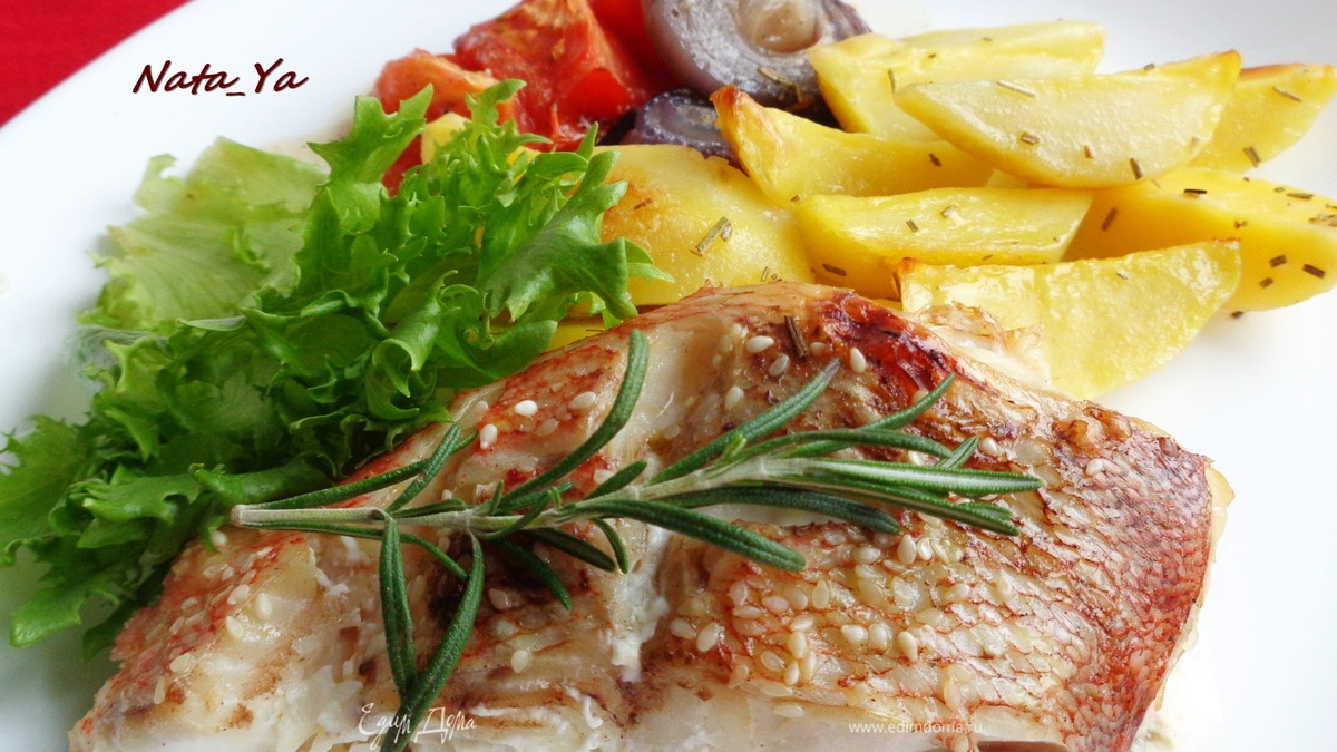 Запеченный морской окунь по-дачному
