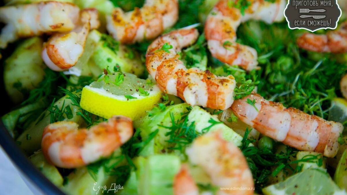 Обжарить креветки. Если у вас охлажденные креветки, то обжаривать по 3 минуты с каждой стороны. А если креветки уже были отварены, то по 1,5 минуты. - Шаг 1