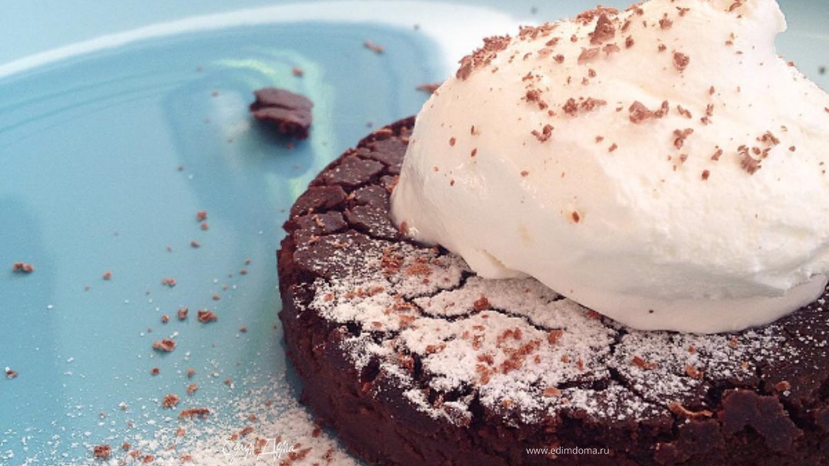 - Шаг 3Подготовьте форму для выпекания. Влейте тесто и отправьте в духовку на 30-35 минут. Проверяйте готовность коржа зубочисткой! Пирог получается не очень сладким, это делает его отличным вариантом для блюстительниц фигуры, а так же вариативным в подаче с любым вареньем, соусом из сметанки или шапочкой из мороженного, как в моем случае!