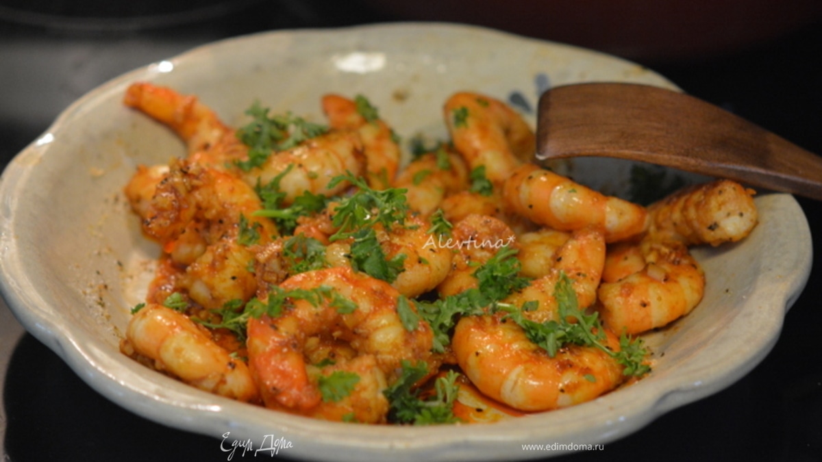 Желательно брать крупные креветки, мелкие готовятся быстрей.