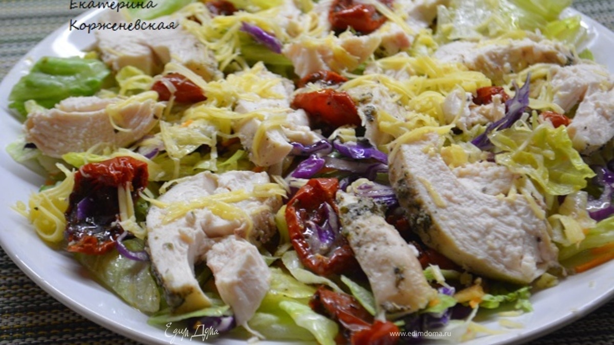 Салат с запеченной грудкой и вялеными томатами