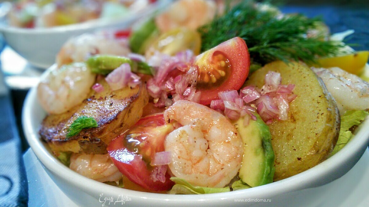 Вика, очень яркий и сытный салат у тебя! Все, что с креветками очень люблю. Такой салат заменит ужин спокойно.
