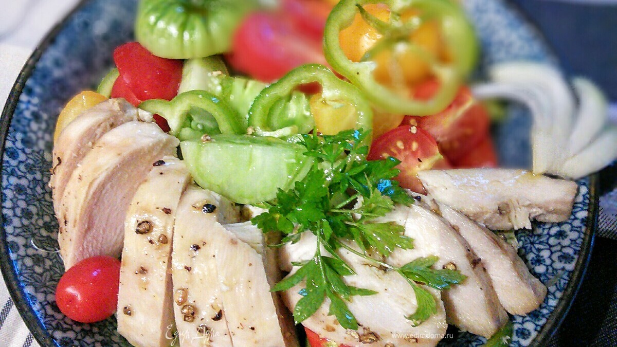 Острый помидорный салат с курицей