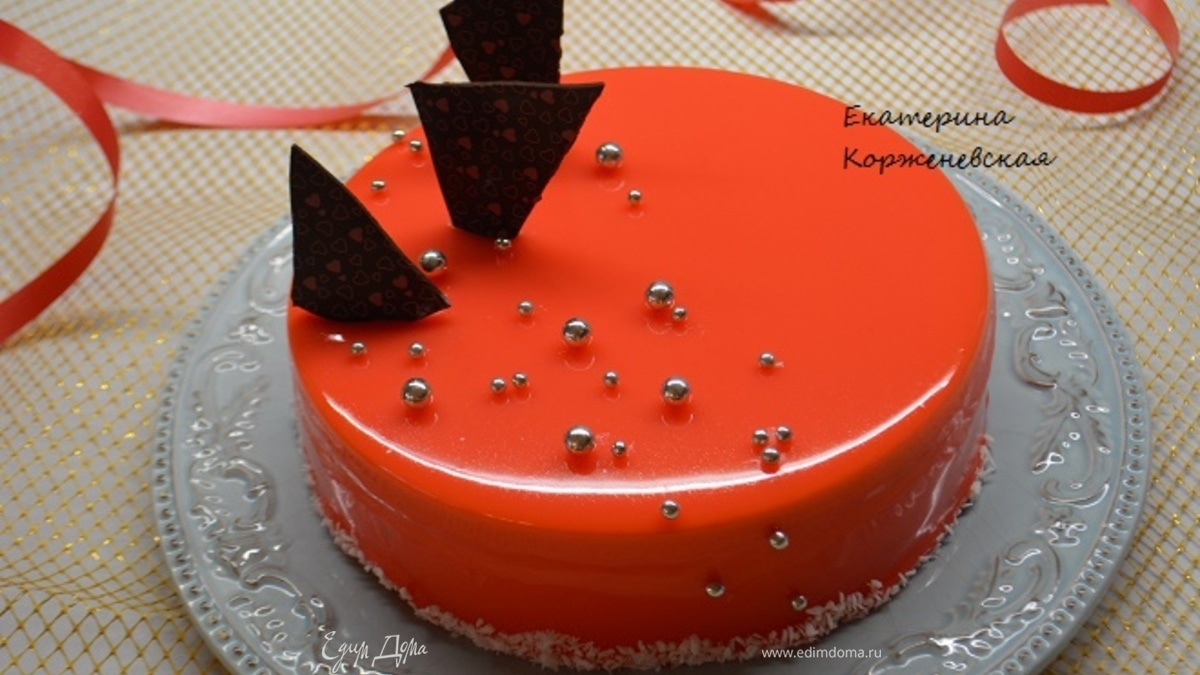 Давно я смотрела на этот торт, единственное у автора он покрыт не зеркальной глазурью, а черным велюром. От этого и название. Я решила его сделать красным.