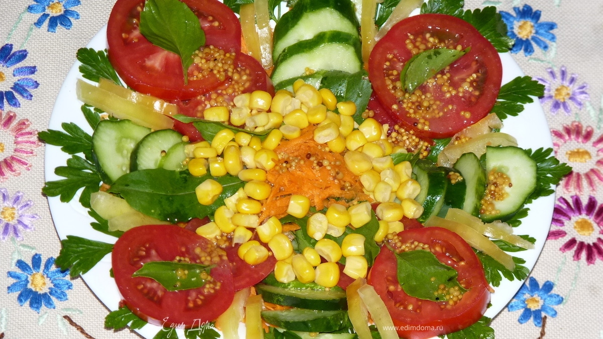 Сверху выложить кукурузу. Готово. Приятного аппетита!