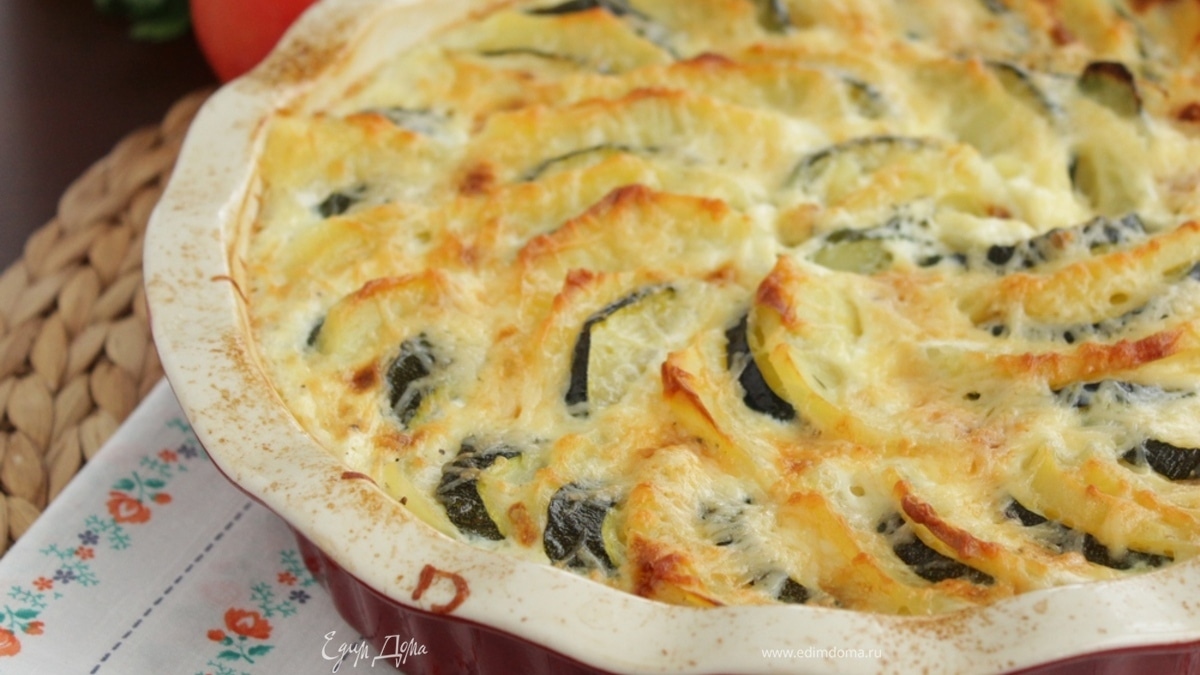 Картофельно-кабачковая запеканка под сливочным соусом