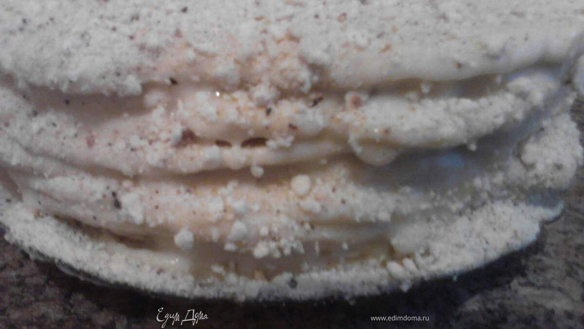 Обрезаем коржи, делаем все одной формы, а обрезки будем использовать для посыпки торта. - Шаг 8