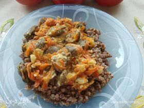 Как такой замечательный рецепт без фотоотчетов? Сделала фото, где все уже в сковородочке тушится, думаю мужу понравится. На гарнир сделала рис, картошку мы вчера ели)