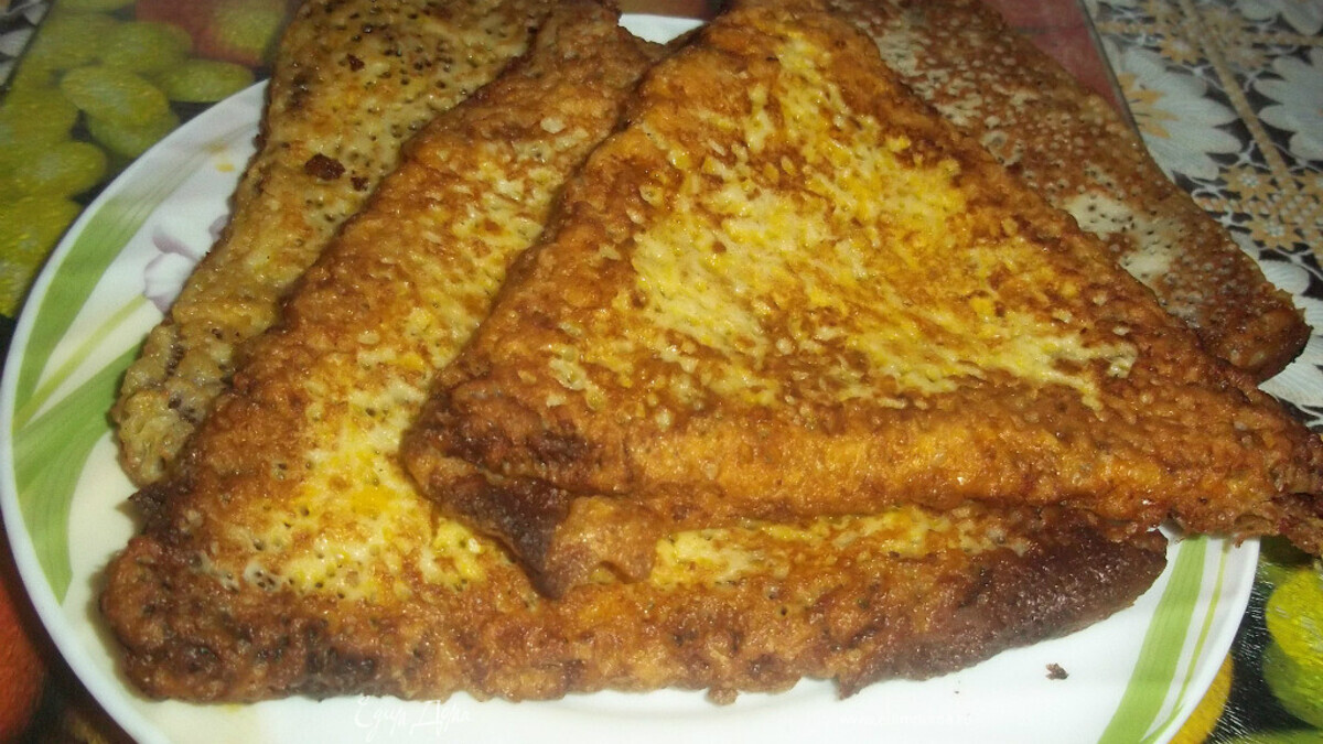 Блин жарится с одной стороны. Готовится начинка (мясная, овощная, по вашему вкусу), на обжаренную часть блина выкладывается начинка и складываем блин в форме треугольника, слега придавливая по углам, опускаем в кляр (яйцо + соль) и обжариваем на раст. масле. Приятного аппетита!