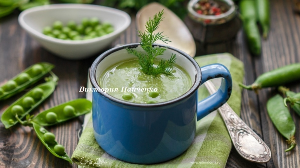 - Шаг 2Всыпать горошек, влить овощной или мясной бульон (или горячую воду) столько, чтобы только покрыть горошек. Варить 5 минут. Пробить блендером до однородности. Приправить солью и перцем. По желанию можно добавить немного сливок. Подавать с гренками.