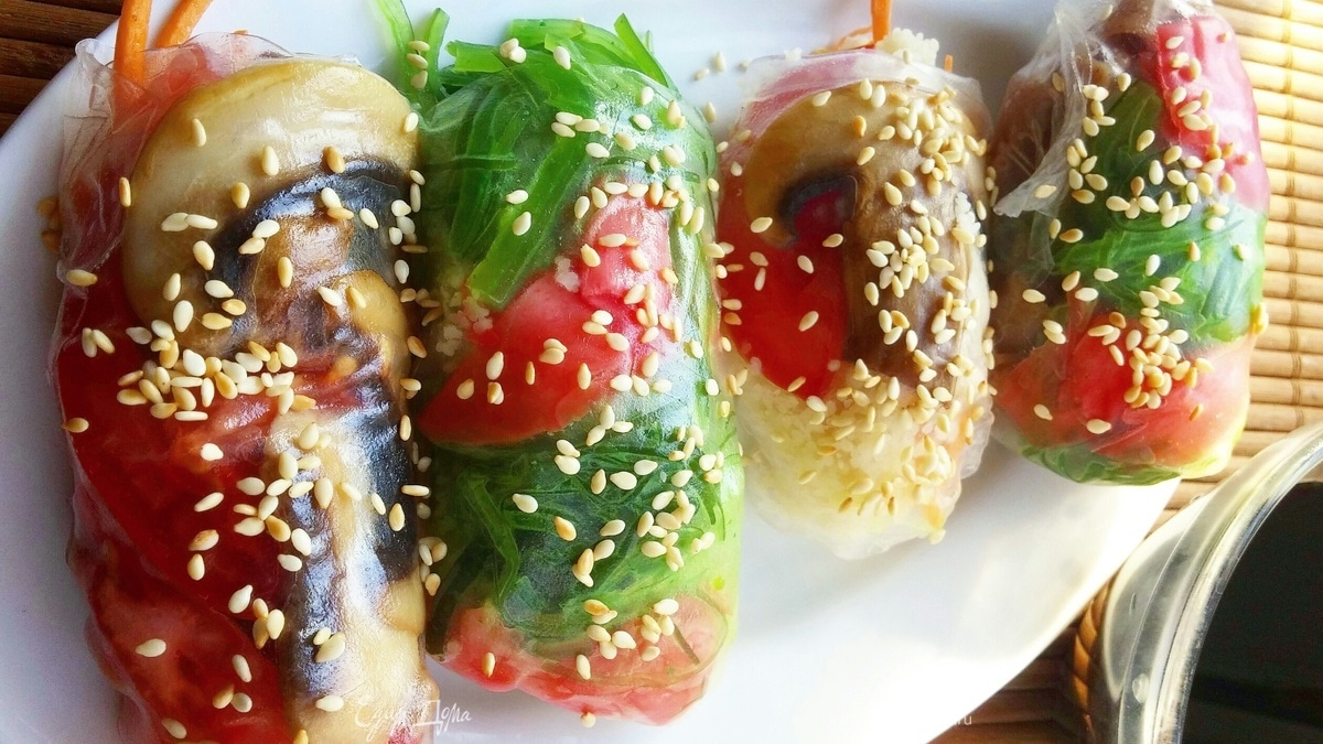В рисовую бумагу можно завернуть все, что душа пожелает! Поэтому это даже не рецепт, а просто идея, как разнообразить привычное меню — сделать из стандартных ингредиентов что-то новое.