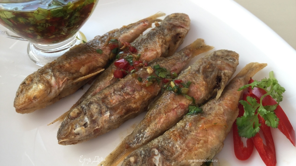 Подавайте жаренную барабульку с ароматным маслом. Приятного аппетита!