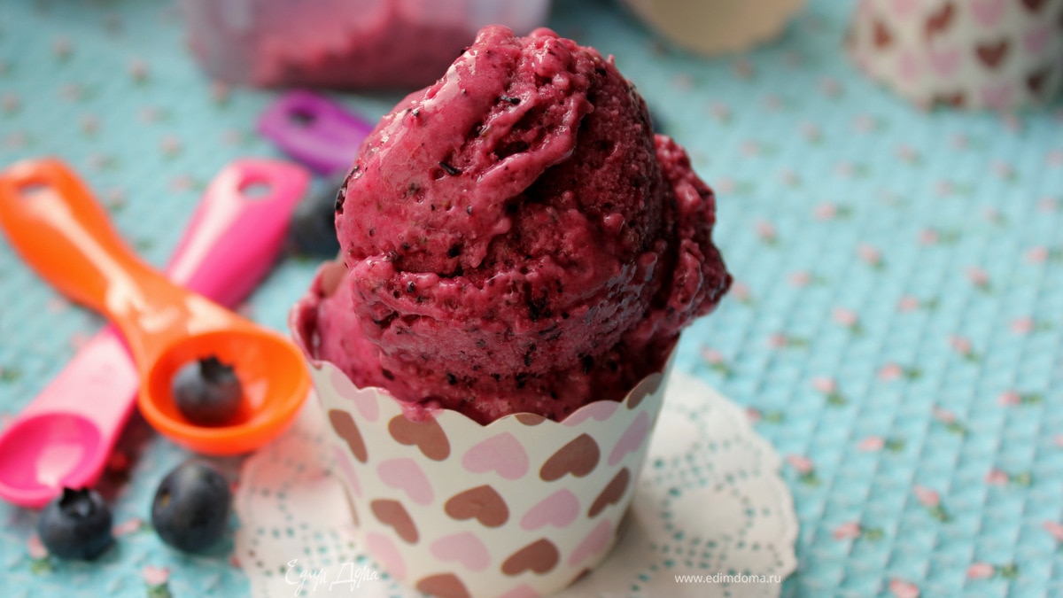 Для приготовления этого мороженого можно взять любые ягоды (клубнику, вишню, чернику).