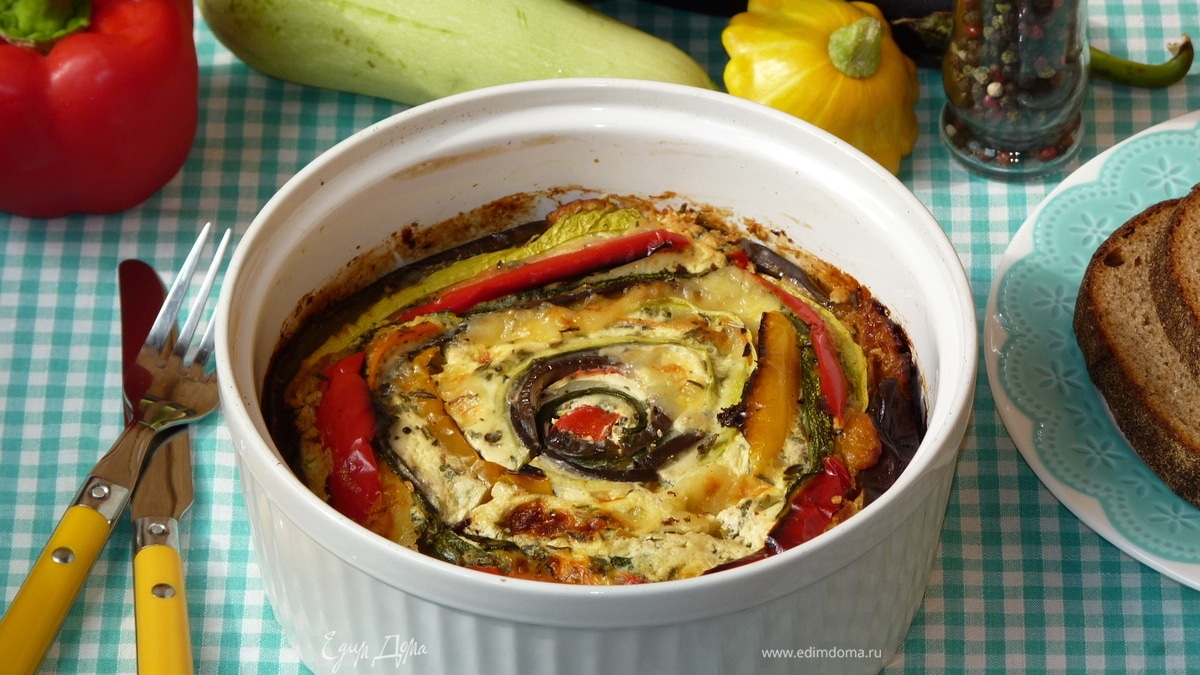 Очень сочная и ароматная запеканка, легка в приготовлении, может послужить полезным завтраком или легким ужином. Рецепт из кулинарной телепередачи. Я его немного изменила — добавила морковь, и в оригинале используют моцареллу, но у меня ее не оказалось, заменила твердым сыром.