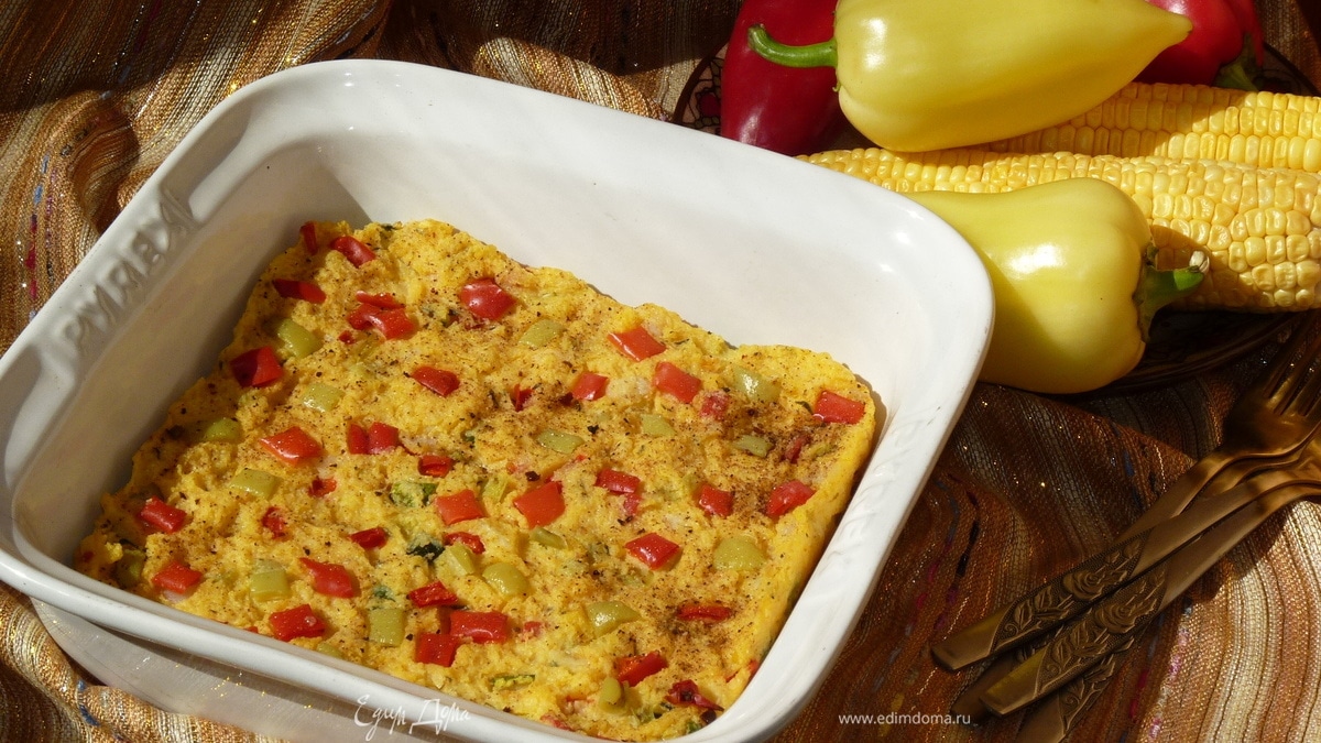 Украсить оставшимся болгарским перцем. Поперчить. Запекать в заранее разогретой до 180°С духовке 20 минут. Немного остудить. Подавать теплой или холодной. - Шаг 7