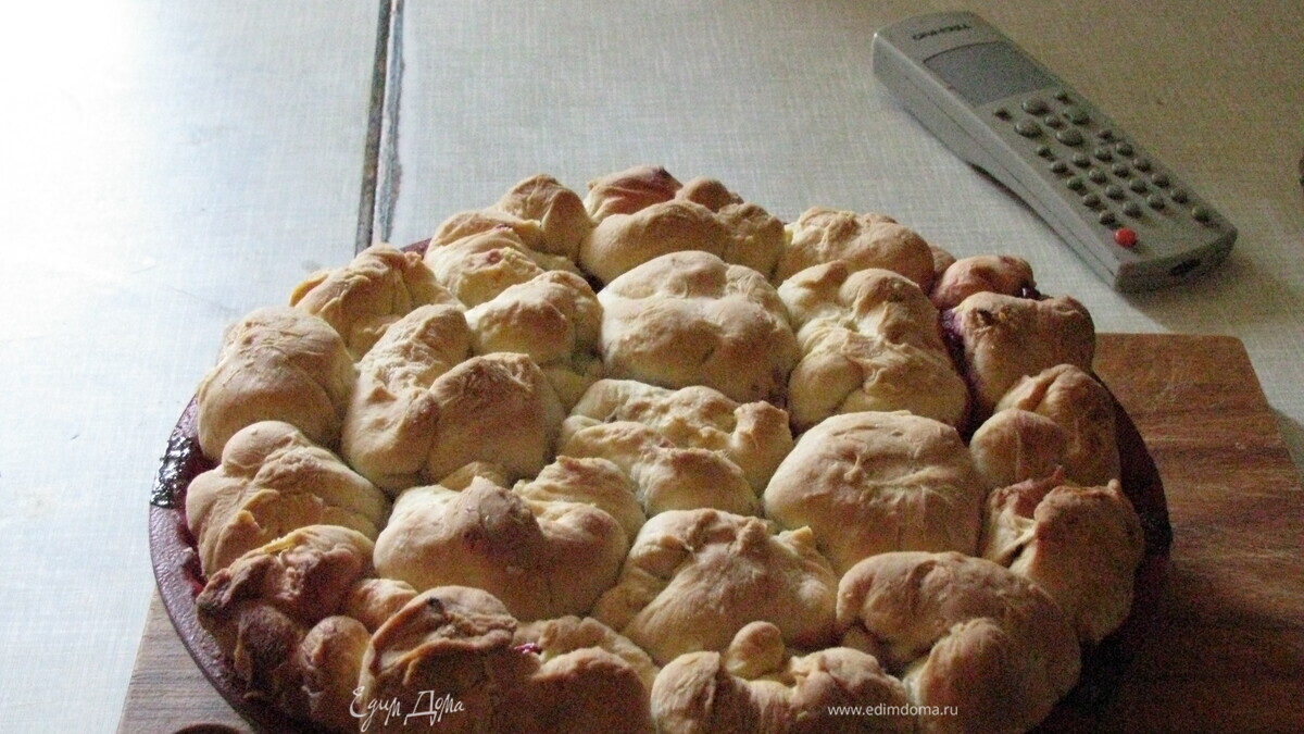 - ПодготовкаВзять небольшой кусочек дрожжевого теста, посыпать мукой и раскатать в небольшой кружок.