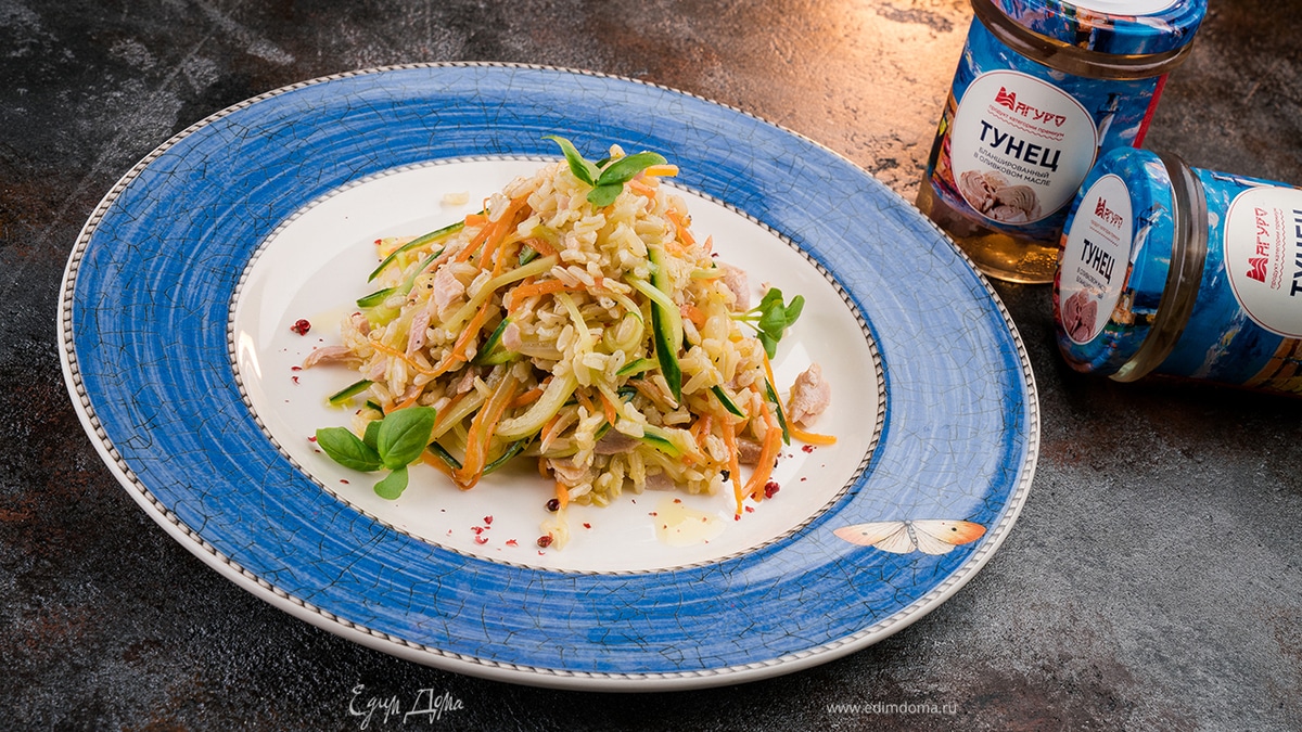 С тунца сливаем лишнюю жидкость, добавляем к остывшему рису. Все перемешать, посыпать свежемолотым черным перцем. - Шаг 4