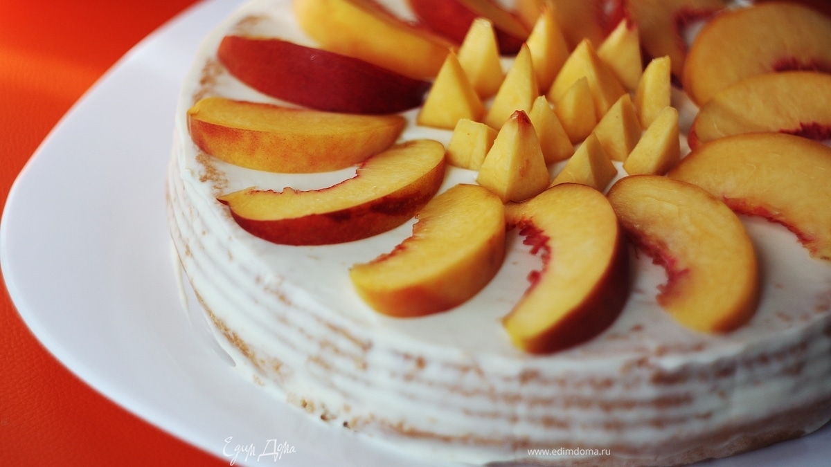 Лето — такая пора года, когда жизнь ускоряется, ты постоянно находишься в движении, разъездах или просто наслаждаешься отдыхом и покоем. Бывает, что времени на готовку чего-то сложного не хватает, а вкусняшек все же хочется. В такой момент на помощь придет этот торт — готовится быстро, ингридиентов минимум + легко дополняется яркими летними вкусами. Я вам предлагаю его сделать с персиками, они как раз сейчас вступают в свои права =)