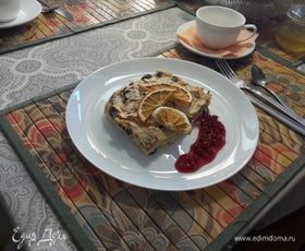 Пудинг стоит подавать почти сразу, чуть остывшим, но достаточно теплым. Сервировать вареньем из красной смородины или любым другим ягодным вареньем или соусом. У меня еще сохранились чипсы из апельсина, которые я сушила сама, поэтому еще решила украсить ими дополнительно. Приятного аппетита!