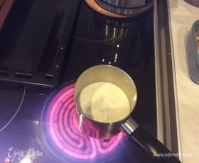 Сливки и молоко соединить в сотейнике и нагреть почти до кипения, но не кипятить.