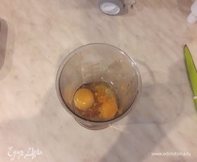 Яйца, сахар, мед, апельсиновую цедру от половины апельсина и корицу поместить в емкость для взбивания.