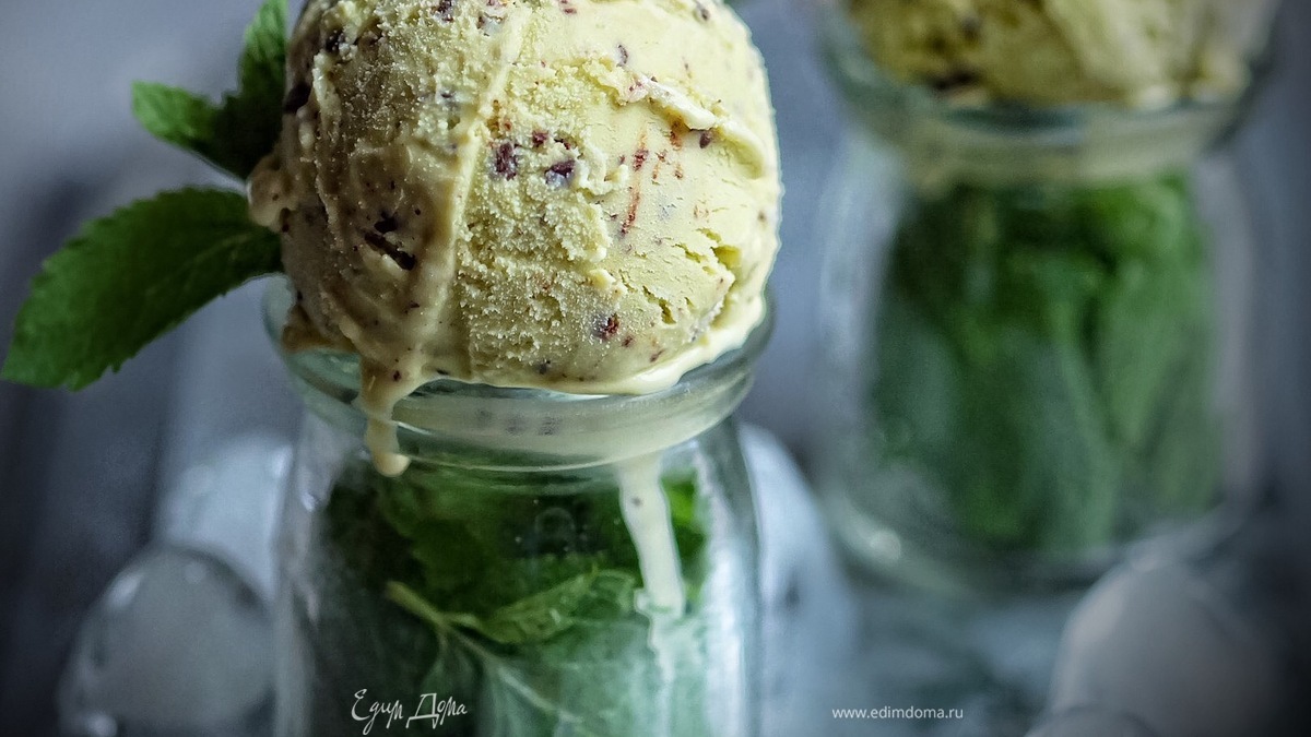 Мятное мороженое с темным шоколадом
