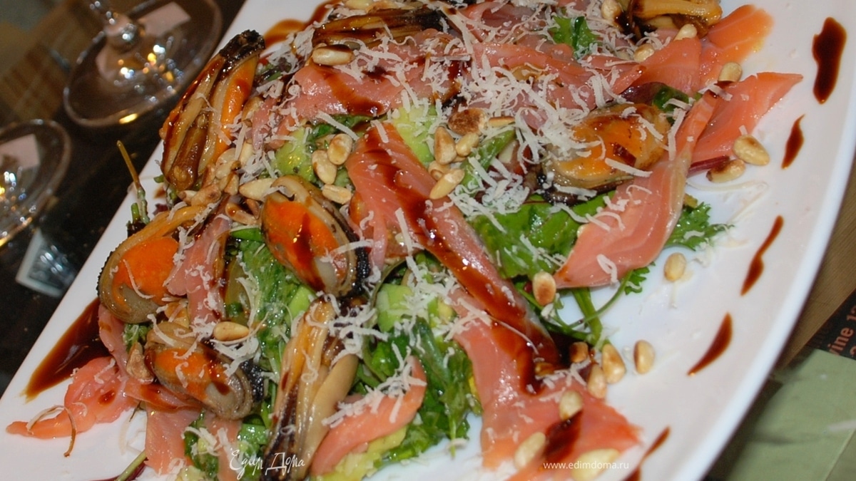 Теплый салат с мидиями