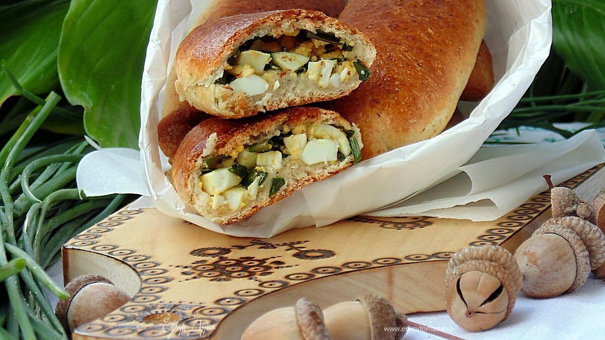Противень застелить бумагой для выпечки, положить пирожки швом вниз, накрыть полотенцем, оставить на 20 минут. Духовку разогреть до 200°С. Смешать желток с 1 ст. л. молока, смазать пирожки яичной смесью. Выпекать пирожки 20 — 25 минут до золотистого цвета. Остудить немного на решетке, обязательно накрыв полотенцем. - Шаг 9
