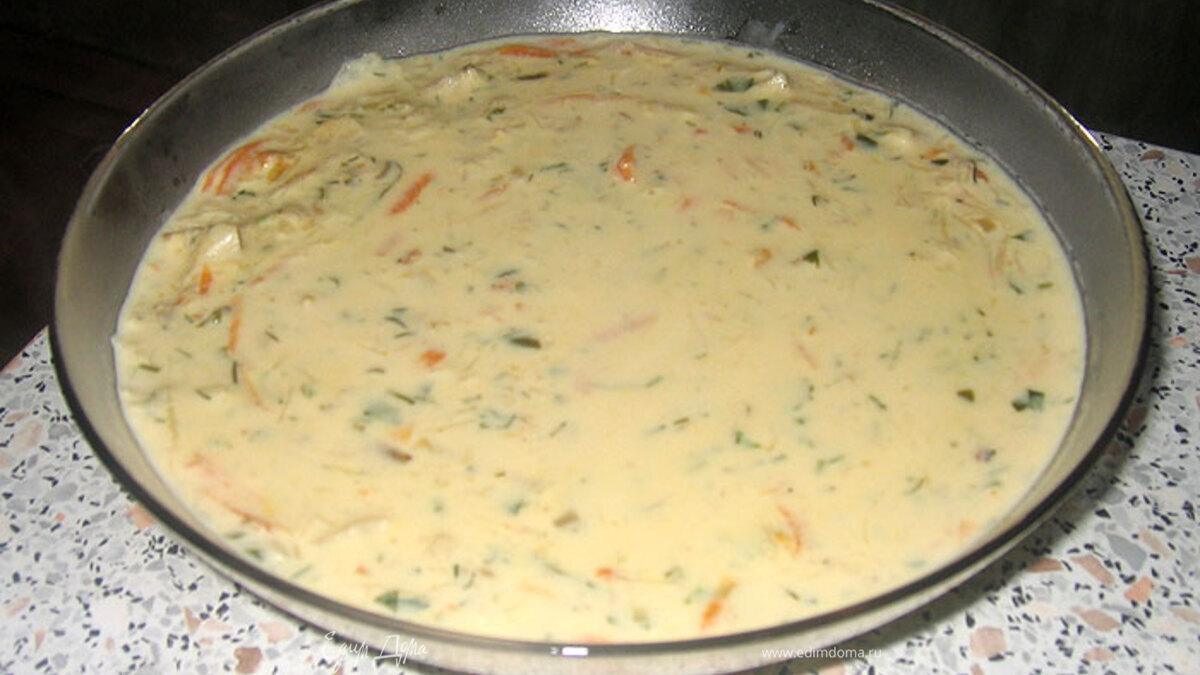 Минут через 10 влить сливки, еще через 10 минут насыпать порезанную зелень, выключить и оставить настаиваться.
