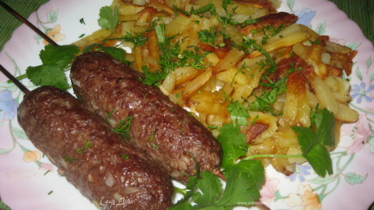 - Шаг 1Мясо (лучше баранина с говядиной) пропустить через мясорубку (желательно добавить курдючный жир), лук мелко порезать или пропустить через мясорубку вместе с мясом. Фарш посолить, поперчить, при желании добавить сушёный базилик. Самое главное - фарш очень хорошо вымесить (отбить), чтобы он стал плотным и вязким (перестал трескаться). Сформировать колбаски диаметром 3 см и длиной около 15 см, нанизать их на деревянные палочки, завернуть в пищевую фольгу и поставить в холодильник (от 30 мин. до суток). Снять плёнку, разместить на противне (в противень наливаю немного водички) и поставить в разогретую до максимальной температуры (у меня 250 градусов) духовку на 30-40 мин (периодически переворачивая). В идеале - жарить на углях. Подавать в лаваше с большим количеством зелени (что я обычно и делаю).