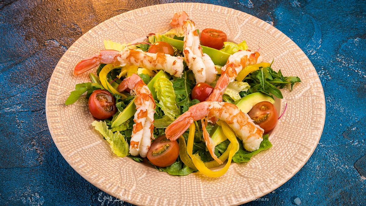 Салат с креветками, авокадо и руколой
