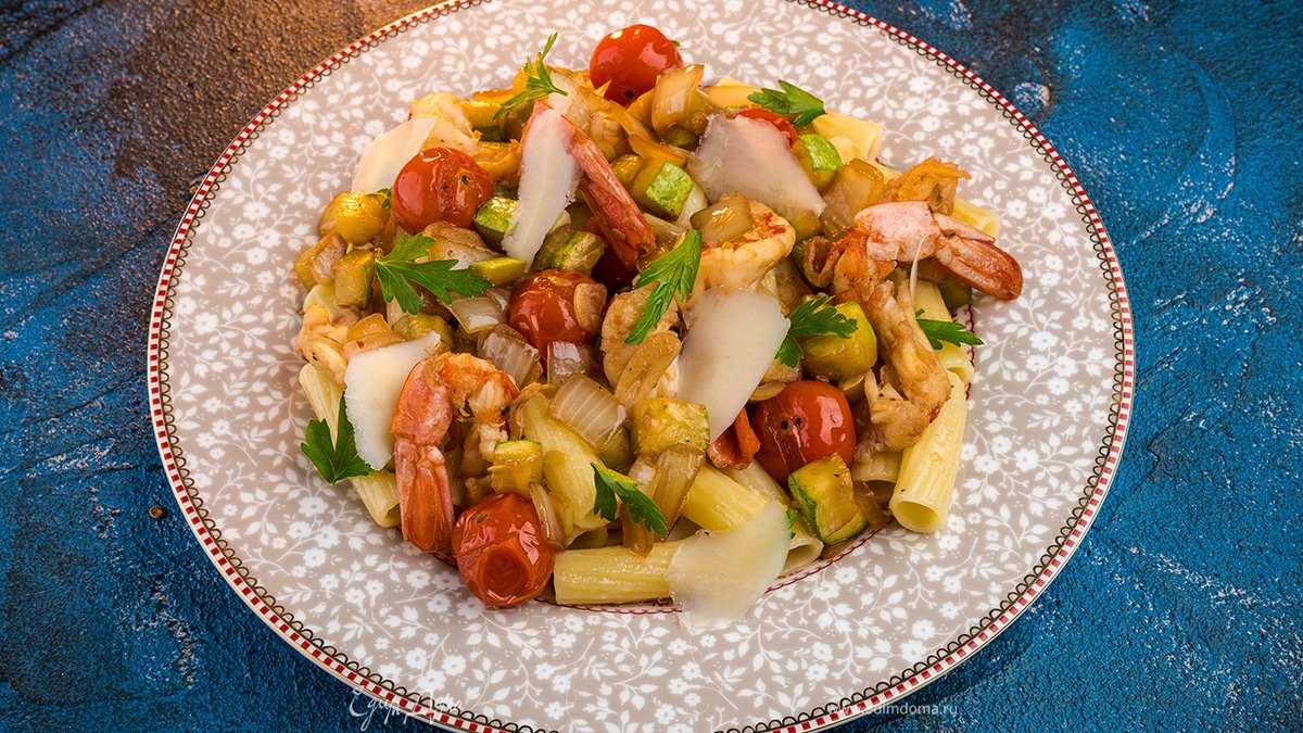 Паста с креветками и кабачками