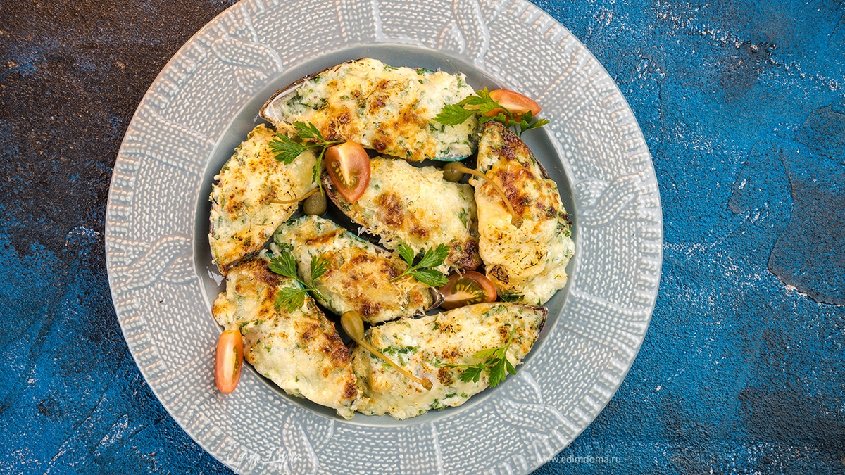 Немного посолите и поперчите мидии, затем выложите на каждую по ложке сырно-сливочной смеси. - Шаг 6