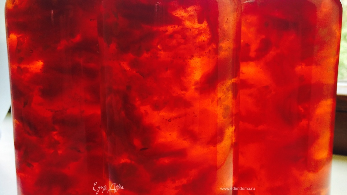 Разливаем горячее варенье по баночкам, перед закруткой немного посыпаем сахаром, не перемешивая, закручиваем и оставляем остывать. Пусть вас не смущает, если варенье не слишком густое, в баночке после остывания оно загустеет. Потом убираем в темное, прохладное место или в холодильник.