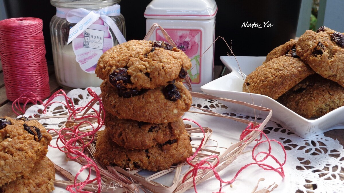 Овсяное печенье на кокосовом масле с клюквой и изюмом