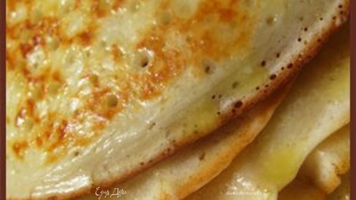 - Шаг 2На разогретую сковороду наливайте тесто (предварительно капнув каплю подсолнечного масла). Каждый блин смазывайте сливочным маслом.