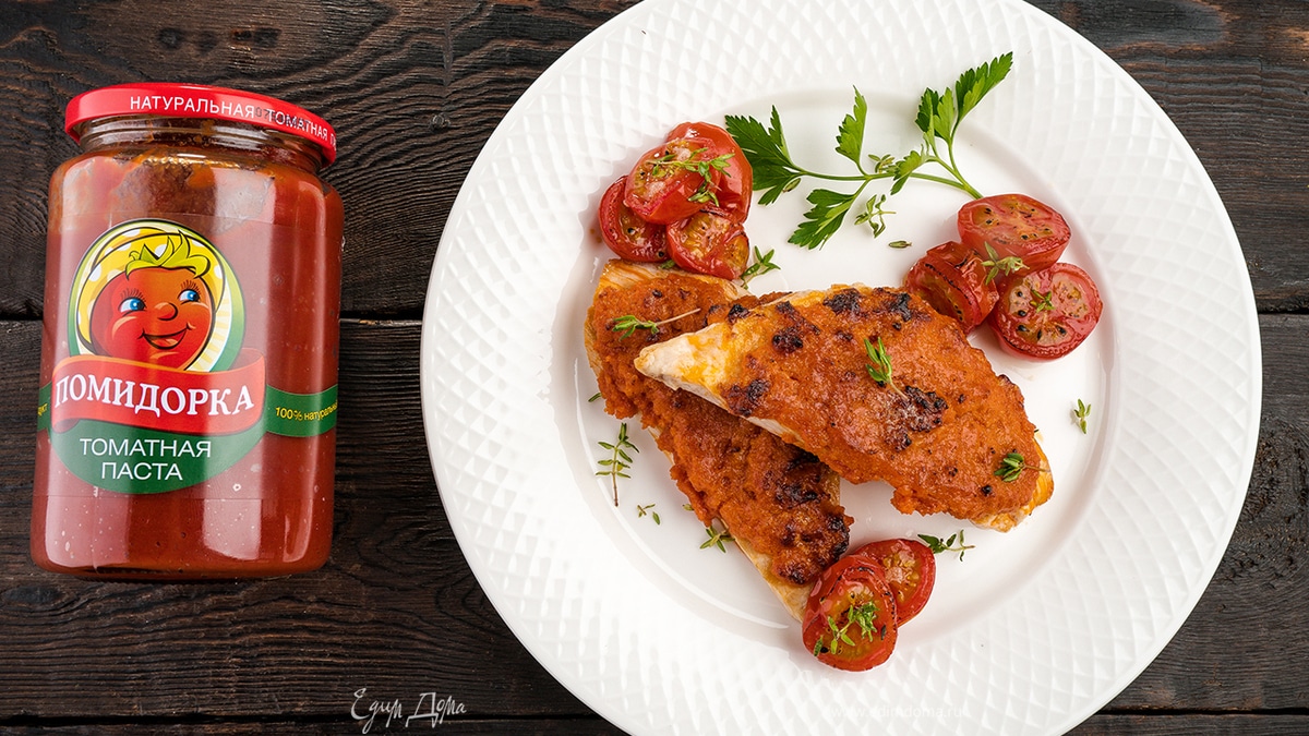 Положить в блендер холодное сливочное масло, желток, томатную пасту «Помидорка», зелень, соль, перец и лимонный сок. Всыпать сухарную крошку и все измельчить. - Шаг 5