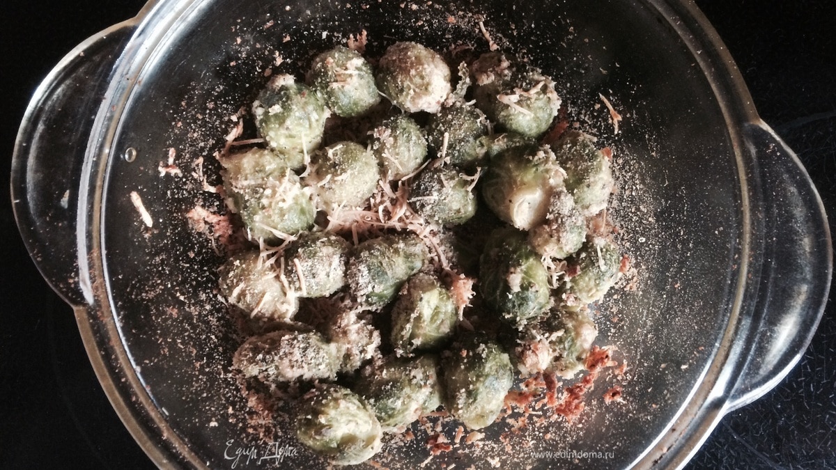 Запеченная с сыром и сухарями брюссельская капуста