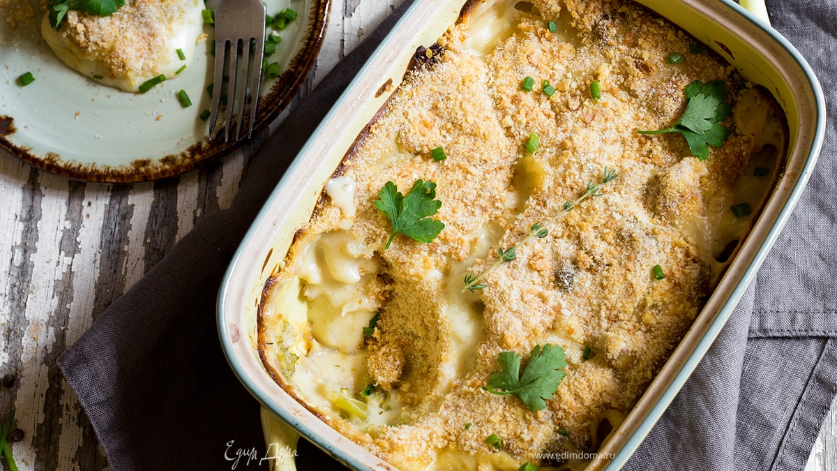 Гратен из брокколи и цветной капусты