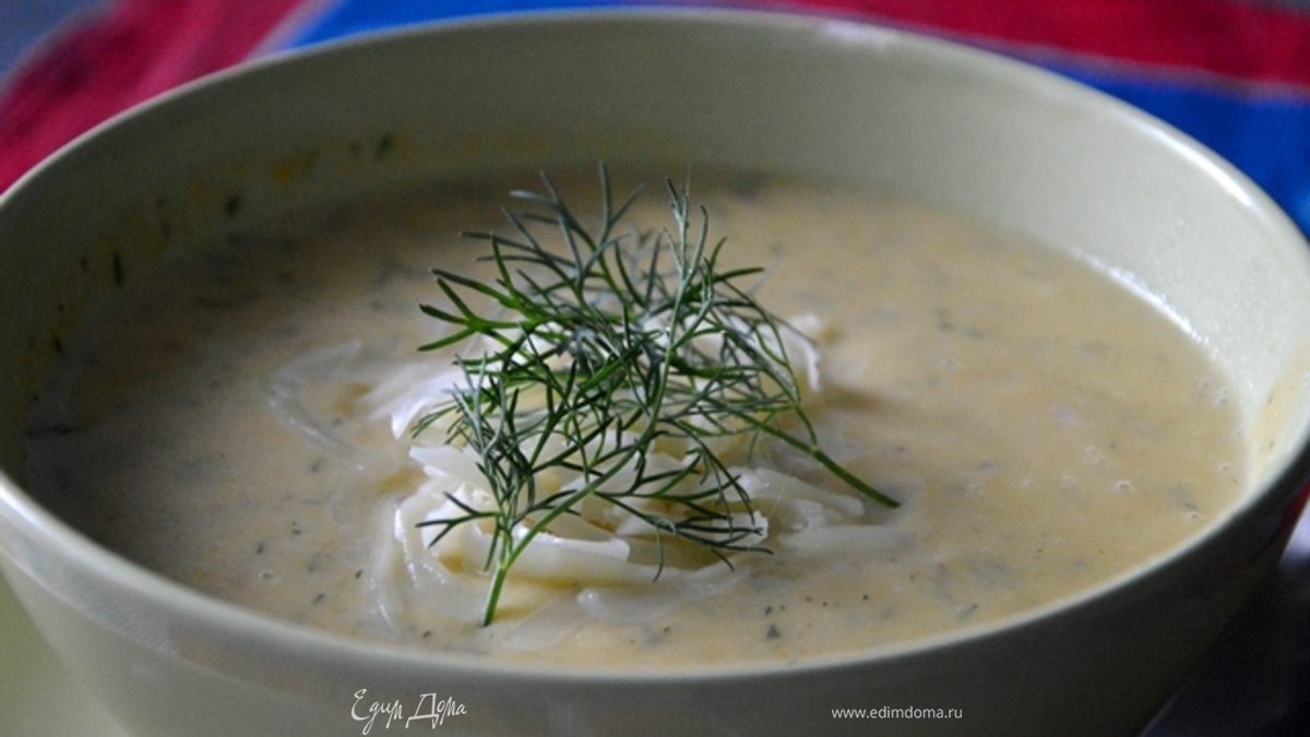 Взбиваем блендером. Добавляем творожный сыр, солим перчим. Я еще добавила укропа для красоты. Доводим до кипения, но не кипятим. Все, блюдо готово. Я его подавала с тертым сыром. Приятного аппетита.