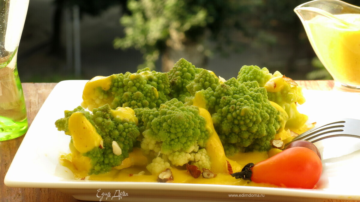 Попробуйте капусту романеско под яично-лимонным соусом сабайон с кусочками миндаля.