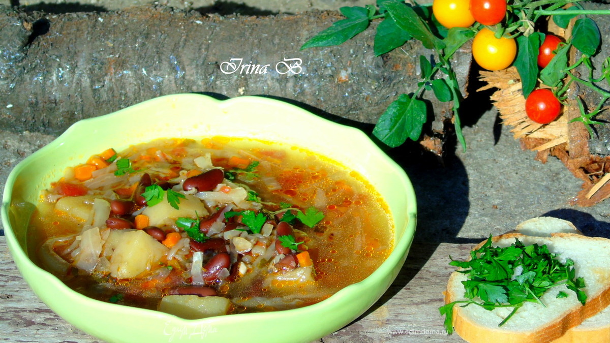 Суп с карри, капустой и фасолью